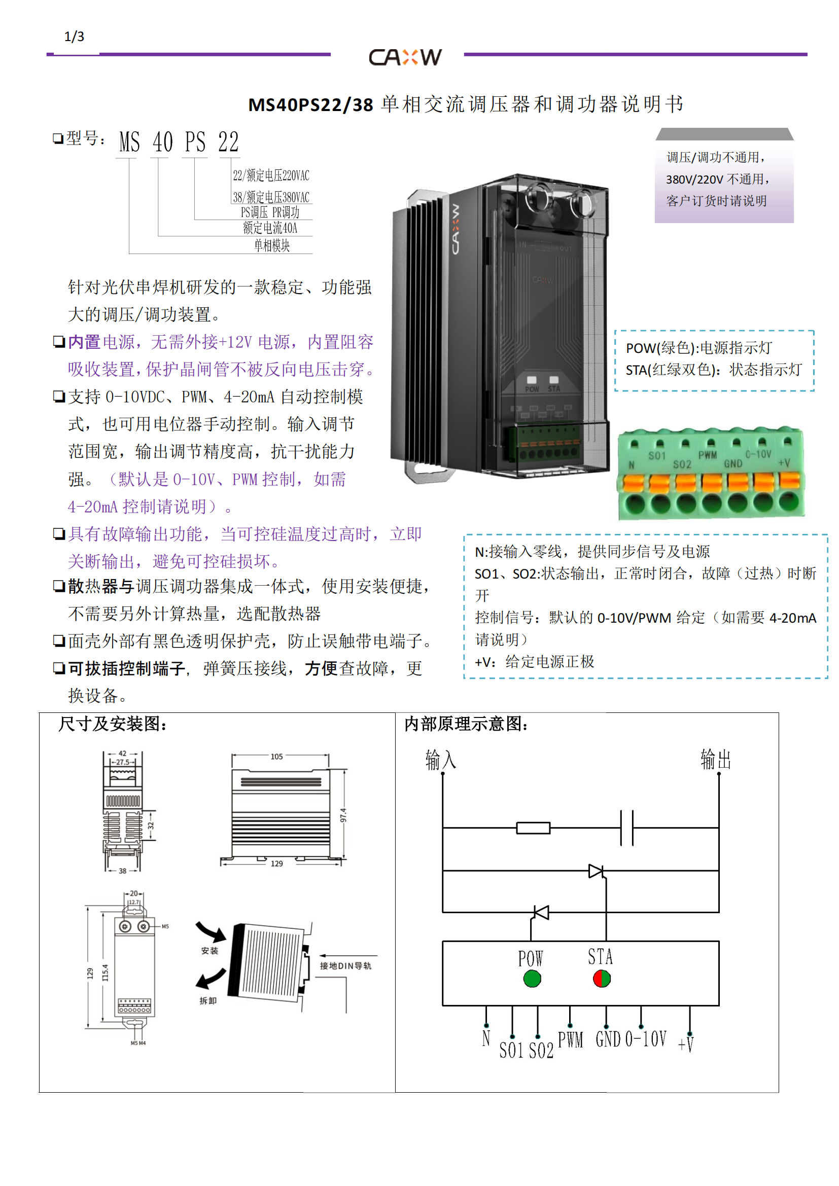 MS40PS22單相交流調(diào)壓調(diào)功器說明書(矽微)